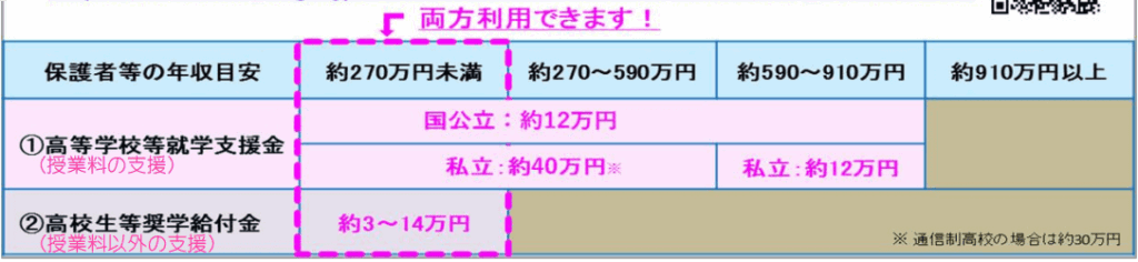 つまり「就学支援金」の対象から外れてしまった場合の補欠となっている感じです。