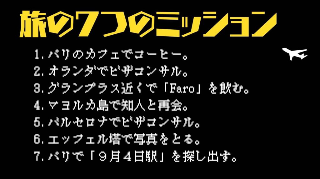 そうそう、今回のヨーロッパ一人旅では、事前に7つのゴールを設定しました。